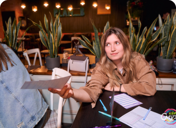 Которая встретит на входе, проведет за столик, раздаст все необходимое для игры, ответит на вопросы, соберет бланки и позаботится о том, чтобы вам было комфортно играть.