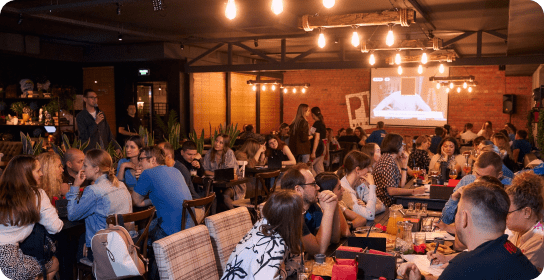 Мы арендуем столик для каждой команды. В то время, как в других кафе требуют депозиты и предоплаты за бронь, мы даем столик бесплатно.